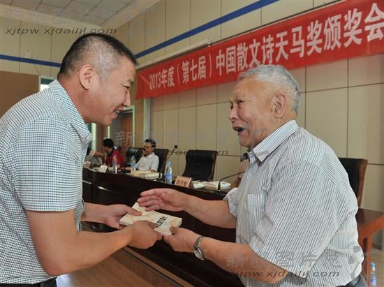 当日,2013年度(第七届)中国散文诗天马奖颁奖会暨散文诗创作座谈会于在伊宁市伊犁师范学院举行。三色堇的《悸动》、亚男的《黄河》、卢静的《大河的宴席》、周根红的《故乡:一种衰老的情绪》及李俊功的《内心的火焰》5位诗人作品获奖。