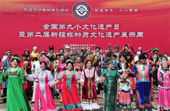 当日,以“非物质文化遗产保护与城镇化同行”为主题的“全国第九个文化遗产日暨第二届新疆非物质文化遗产展示周”活动在塔城市启动。活动内容包括新疆非物质文化遗产专场演出,新疆非物质文化遗产传统服饰、特色饮食、刺绣展示及文化遗产创意展示等,让参观者感受非遗魅力。
