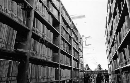 新疆大学图书馆为了配合教学工作,培养人才,七个阅览室每天开放13个小时,可接待各族师生七百多人次(摄于1986年)。