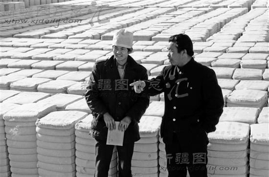 20世纪60年代毕业于塔里木农垦大学的张峰(右)现在是农一师九团场副场长,在出口长绒棉的加工和管理上获农一师科学技术进步奖(摄于1988年)。