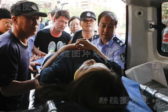 2014年6月20日,在乌鲁木齐市炉院街片区管委会珠江南路社区,社区工作人员进行防灾演练。