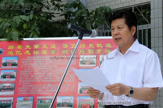 2014年6月21日,焦裕禄干部学院院长祁金立在新疆哈密地委党校共建揭牌仪式现场讲话。