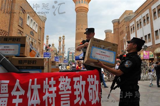 关键字:新疆乌鲁木齐 新疆国际大巴扎 慰问 特警 维稳 警察