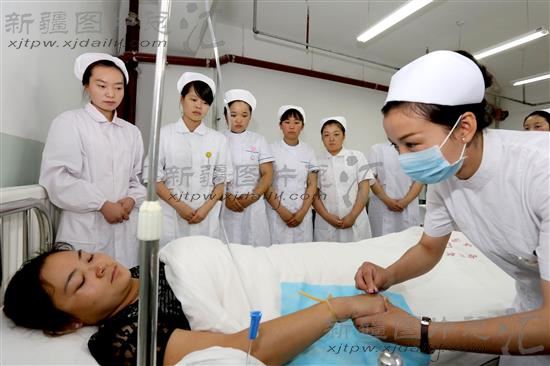2014年6月26日,学生在进行护理专业基本技能操作学习。