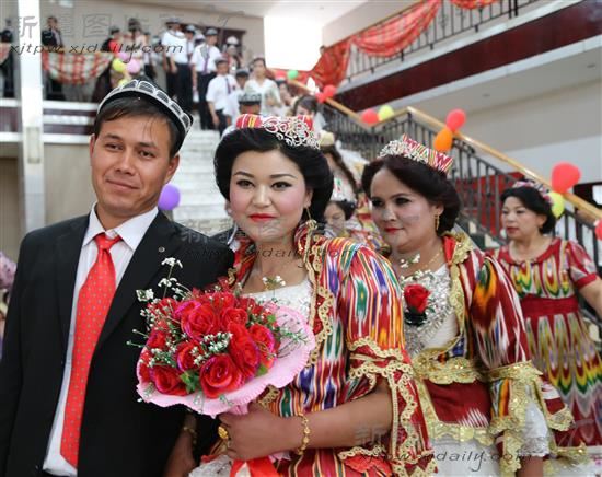 2014年6月27日,来自库车县街道和乡镇场的39对各族新人参加集体婚礼。以此形式弘扬社会新风尚、倡导婚事新办。