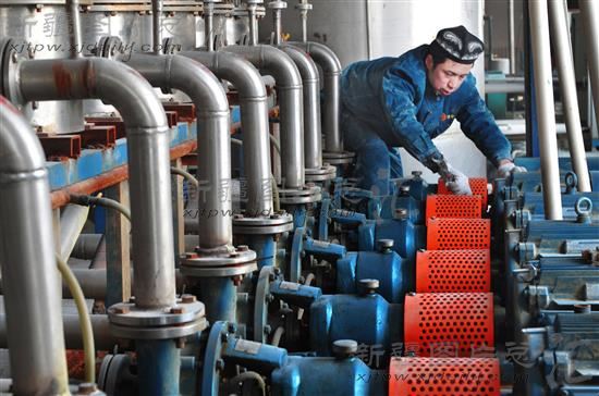 2012年1月22日,企业技术人员在检查维护生产设备。拜城万帮淀粉制造有限公司2009年建成投产,主要从事玉米淀粉、玉米蛋白粉、胚芽、纤维等副产品生产,已完成投资14996万元,去年该公司完成收购及加工玉米原粮43600吨,生产玉米淀粉27800吨,创产值1.05亿元,实现销售收入9001万元。目前,产品销往全疆各地并出口吉尔吉斯斯坦。