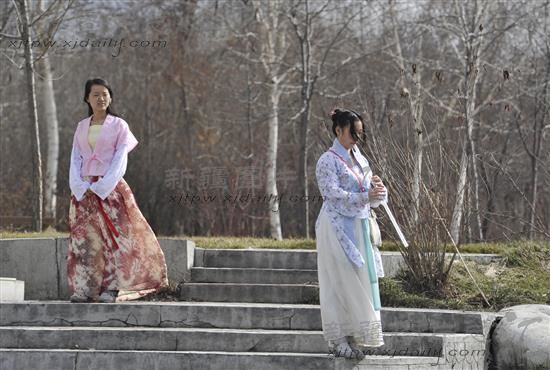 2013年3月25日,中华传统文化花朝节。乌鲁木齐市一些汉服爱好者着汉服,按照传统礼仪祭百花,踏青、射箭。