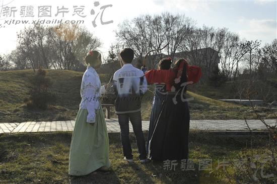 2013年3月25日,中华传统文化花朝节。乌鲁木齐市一些汉服爱好者着汉服,按照传统礼仪祭百花,踏青、射箭。