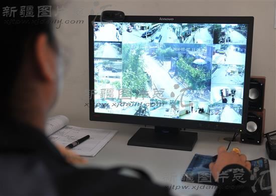 2014年7月7日,社区工作人员通过智能监控网络在查看辖区实时情况。
