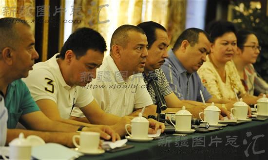 自治区民族贸易商会的少数民族企业家代表联名发表致维吾尔族同胞的公开信会场。
