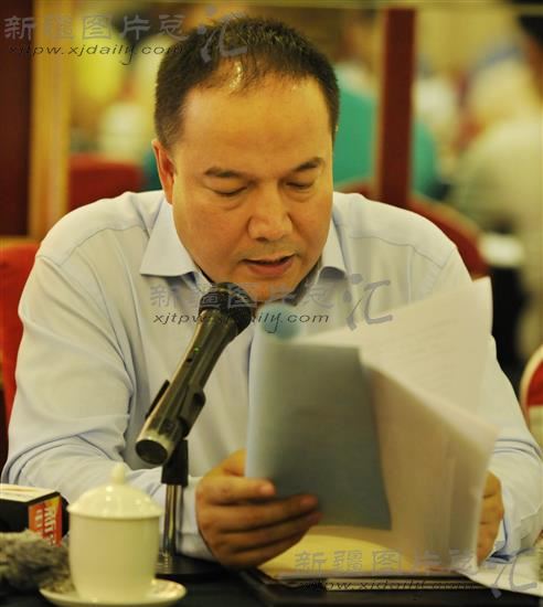 新疆民族贸易商会会长、阿尔曼清真食品工业集团有限公司董事长兼总裁热迪力·阿布拉代表民族企业家宣读公开信。