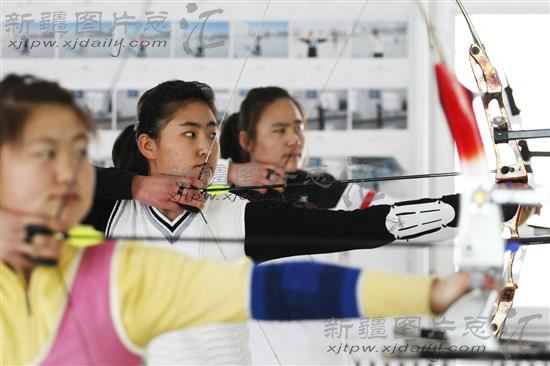 2012年3月15日,伊犁哈萨克自治州察布查尔锡伯自治县射箭运动学校的队员在训练。据了解,该学校按照确定的“从小抓起,梯队布局,长抓不懈,力争培养更优秀射箭人才的发展战略”为目标,把培养、输送射箭后备人才作为工作重点,为国家和自治区输送了多位优秀的射箭运动员。