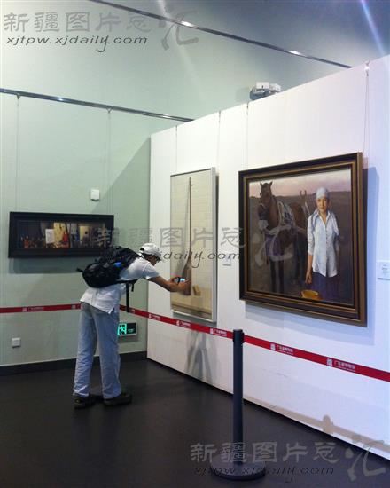 2012年3月20日,在“新疆油画全国行——情系神州”广州站展厅里,市民在拍自己喜欢的画。