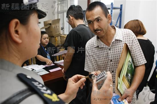 2014年7月10日,乌鲁木齐市民阿布拉江·比拉力在春和景明廉租房小区物业领取钥匙。