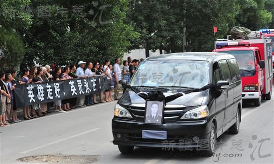2014年7月13日,博乐市各族群众自发为抢险牺牲的消防战士徐岩超烈士送行。