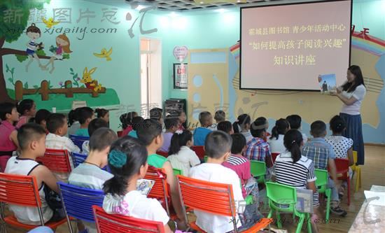 2014年7月16日,霍城县图书馆在青少年阅读专区举行“如何提高孩子阅读兴趣”知识讲座,讲座吸引了近60名孩子参加。此项活动是霍城县图书馆今年开展“快乐暑假、阅读相伴”系列活动之首期讲座,旨在提高学生的阅读意识和知识积累,为孩子今后提升阅读素养奠定基础。