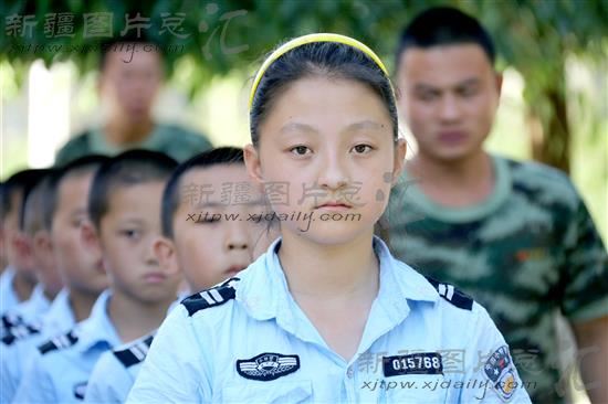 2014年7月15日,新疆哈密市,小朋友在训练军姿。