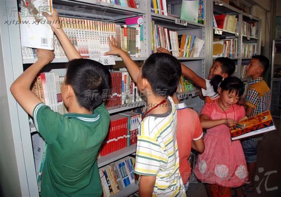 2014年7月17日,新疆生产建设兵团第二师三十团社区的学生,在农家书屋借阅书籍。