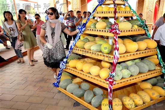当日,“甜蜜之旅”第十一届哈密瓜节在新疆哈密开幕,本届哈密瓜节主题是“甜蜜瓜乡 和谐哈密”,向游客展出了130个品种的哈密瓜,将举办赛瓜、品瓜、赏瓜等系列活动。