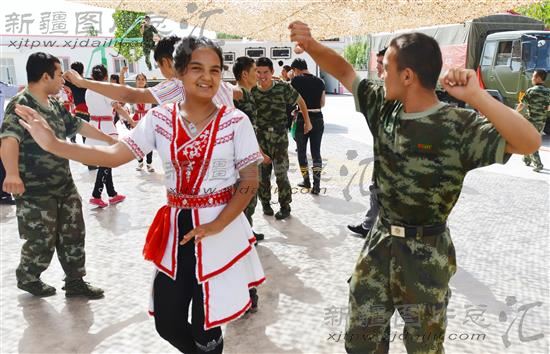 2014年7月30日,在“八一” 建军节来临之际,阿瓦提县组织返乡大学生开展送文化进军营活动,为官兵们送去节日的祝福。