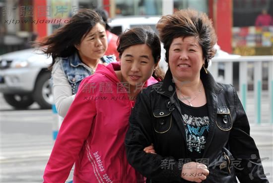 2012年4月22日,乌鲁木齐街头,行人在大风中行进。4月21日夜起,一股冷空气将开始影响新疆,带来大风降温沙尘天气。22日白天乌鲁木齐最高气温降至10℃。大风扬尘天气给居民的出行带来不利影响。