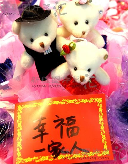 中国传统节日“七夕”临近,克拉玛依市白碱滩区各花店纷纷推出独具匠心的鲜花花盒、卡通花束、糖果花盒等甜蜜礼物,吸引消费者购买。