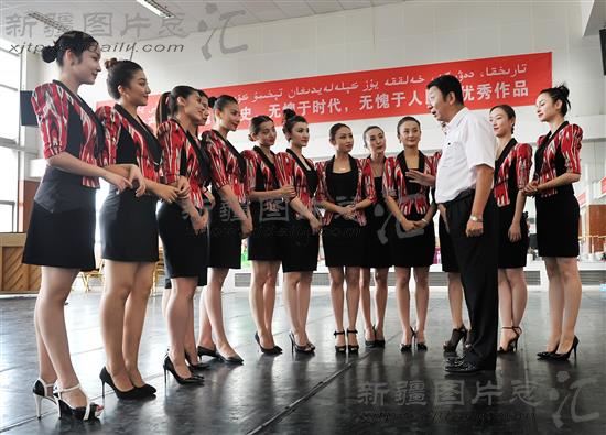 2014年8月15日,新疆艺术剧院歌舞团副团长郭成与团员交流。