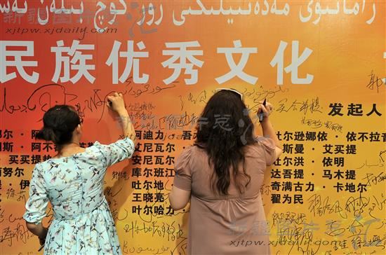 2014年8月15日,来自我区文化系统的千余名各族优秀文化工作者在主题为“弘扬民族优秀文化 大力倡导现代文明”——新疆文化工作者致维吾尔族同胞的一封公开信上签名,号召维吾尔族同胞热爱自己悠久的历史文化,与宗教极端势力做斗争,建设稳定和谐的新疆。