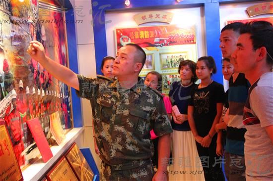 2014年8月18日,大学生在库车龟兹消防中队荣誉室参观。