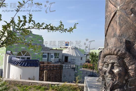 这是8月16日拍摄的达坂城区阿克苏乡“鹰舞庄园”一户哈萨克族定居牧民居住的别墅院落。