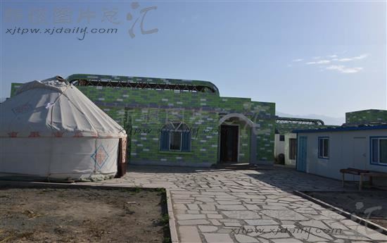 8月16日,达坂城区阿克苏乡“鹰舞庄园”一户哈萨克族定居牧民别墅院子.