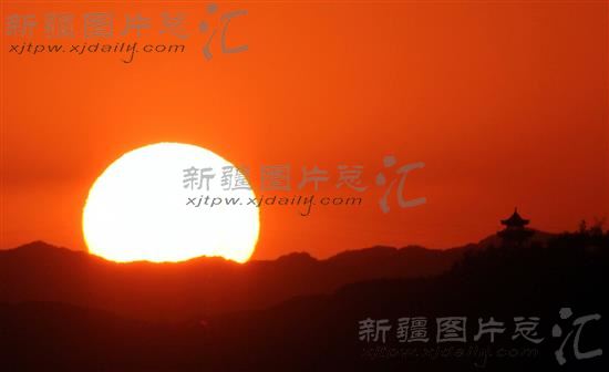 2012年5月10日清晨,一场细雨天气过后,太阳从库尔勒市龙山后升起。5月9日,在被称为梨城的库尔勒地区出现“立夏”后第一场细雨天气,到了当天傍晚,天空切蒂放晴。5月10日,库尔勒地区迎来“万里晴”天气,让梨城市民有了塞外江南的感觉。