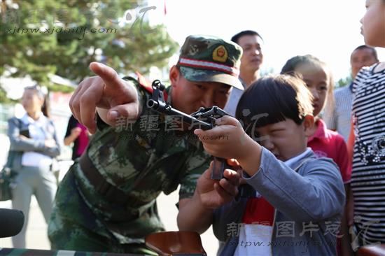 2014年8月19日,塔城市第六小学学生在巴克图边检站体验警营生活.