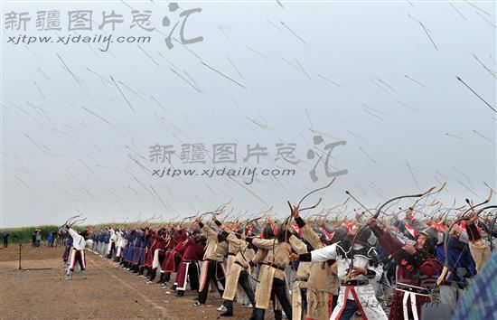 8月19日,千名勇士在察布查尔锡伯自治县爱新舍里镇纳旦木卡伦,射出三千支响箭。