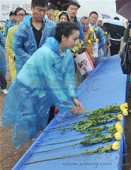 8月19日,锡伯族演员佟丽娅、陈思成夫妇献上菊花祭祀锡伯族戍边先辈。