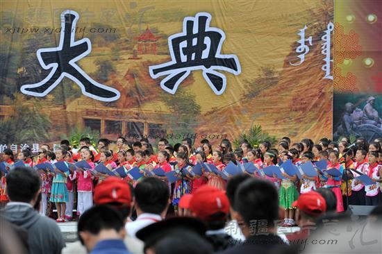 2014年8月19上午11时, 察布查尔锡伯自治县人民广场彩旗飘扬,欢声笑语,一派喜庆热闹的节日气氛,这里正在举行察布查尔锡伯自治县成立60周年和锡伯族西迁250周年庆祝活动。