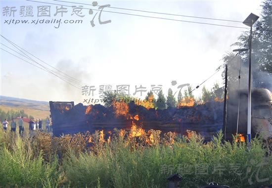 关键字:裕民县 运草车 触电 着火 火灾 新疆 塔城地区 灭火 消防员 突发事件