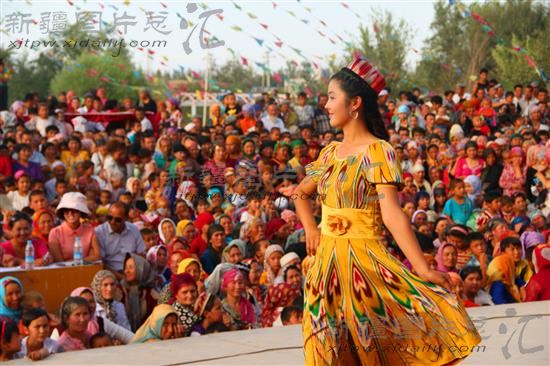 当日,库车县举办“漂亮的脸蛋露出来,美丽的长发飘起来,勤劳的双手动起来,幸福的生活美起来”模特大赛。所有参赛模特都是当地普通农民。12支农民模特代表队的168名模特在动感的音乐声中,和着节拍,走猫步、摆造型,用靓丽的服装展示自己的风采。