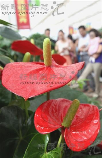 2014年8月23日,游客正在“2014中国·新疆赏石古玩花卉博览会”上赏花。