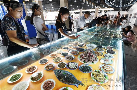 2014年8月23日,游客在欣赏 “满汉全席”奇石宴。