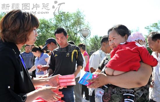 2012年5月28日,工作人员在向游客派发计生宣传资料。当日,乌鲁木齐市水磨沟区新民路街道计生协会在红山公园开展计生宣传活动,向公园游客免费派发计生用品和宣传资料,并以展板的形式向观众讲解了计生、避孕知识。据了解,今年5月29日是中国计生协会成立32周年纪念日。