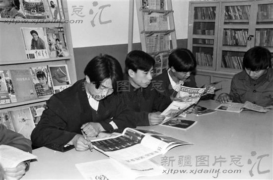 玛纳斯电厂丰富职工文化娱乐活动,在该厂设施齐全的文化娱乐中心,大家各得其乐。如饥似渴的青年们竞相到图书室博览群书,增加知识(摄于1995年2月16日)。