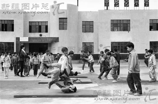 乌鲁木齐县二工乡中营宫企业集团公司出资50万元盖起了教学大楼,为小学生们提供了良好的学习活动场所(摄于1995年5月30日)。