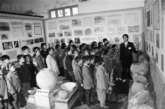 1995年5月28日,奇台县逸夫小学学生参观历史文物展,了解新疆发展历史。