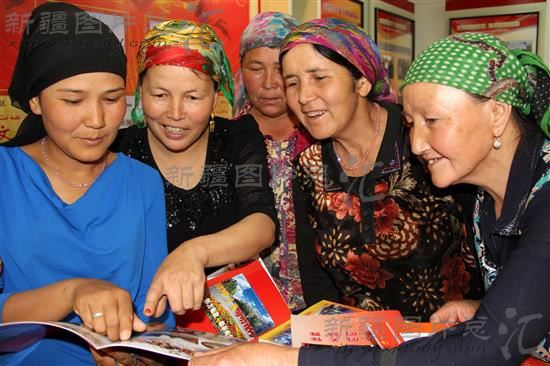 2012年5月30日,新疆阿克苏地区库车县阿格乡兰干村村民在国防教育基地看到村庄旧貌换新颜的图册。连日来,该县各乡镇、县直单位、村、社区结合第30个民族团结月,开展形式多样的教育活动,激发大家爱国、爱党、爱社会主义的感恩之情。