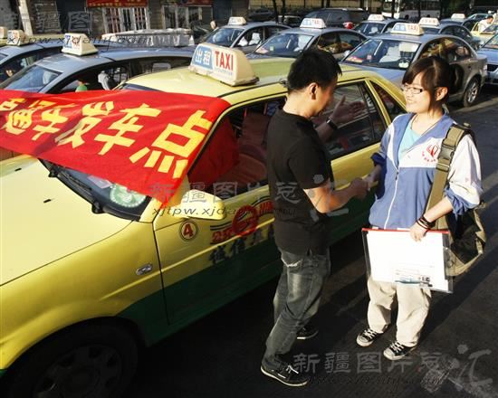 2012年6月7日早8点左右,一位参加今年高考的考生乘坐乌鲁木齐市公交汽车出租公司的“爱心送考”出租车赶赴考场。当日,该出租公司在乌鲁木齐市日月星光小区、嘉禾园小区、公交三公司小区准备了80辆“爱心送考”出租车免费送高考考生赶赴考场。据了解,该公司剩余的420辆出租车也全部投入到当日的“爱心送考”活动当中,是历年来车辆投入数量最多的一年。