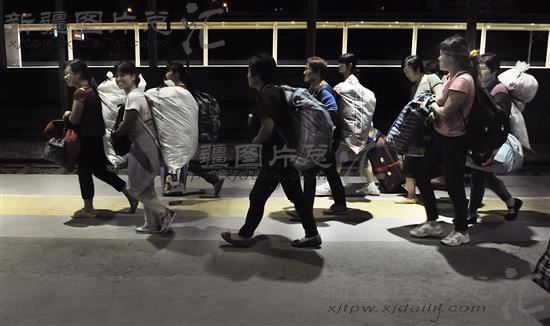 2014年8月28日零时许,来自河南商丘的拾花工专列抵达乌鲁木齐站。