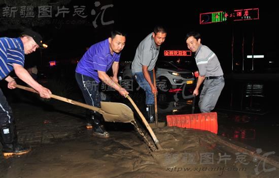 继2012年6月21日突降暴雨之后,26日下午6时许,阿勒泰市又降暴雨冰雹,市区到处是洪水和淤泥,部分道路受阻,市政府迅速组织人员上街,连夜清理街道。