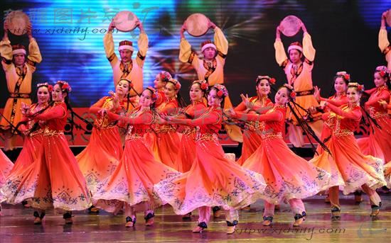 2012年7月14日,泽普县文工团演员在表演集体舞蹈《故乡欢歌》。