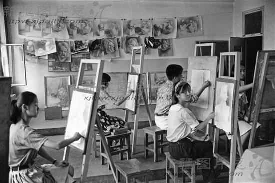 1995年7月27日,乌鲁木齐市第一中学美术组同学暑假进行创作的情景。